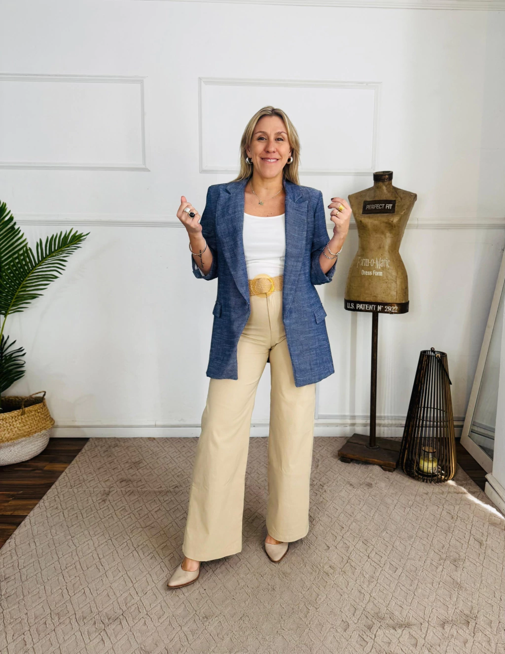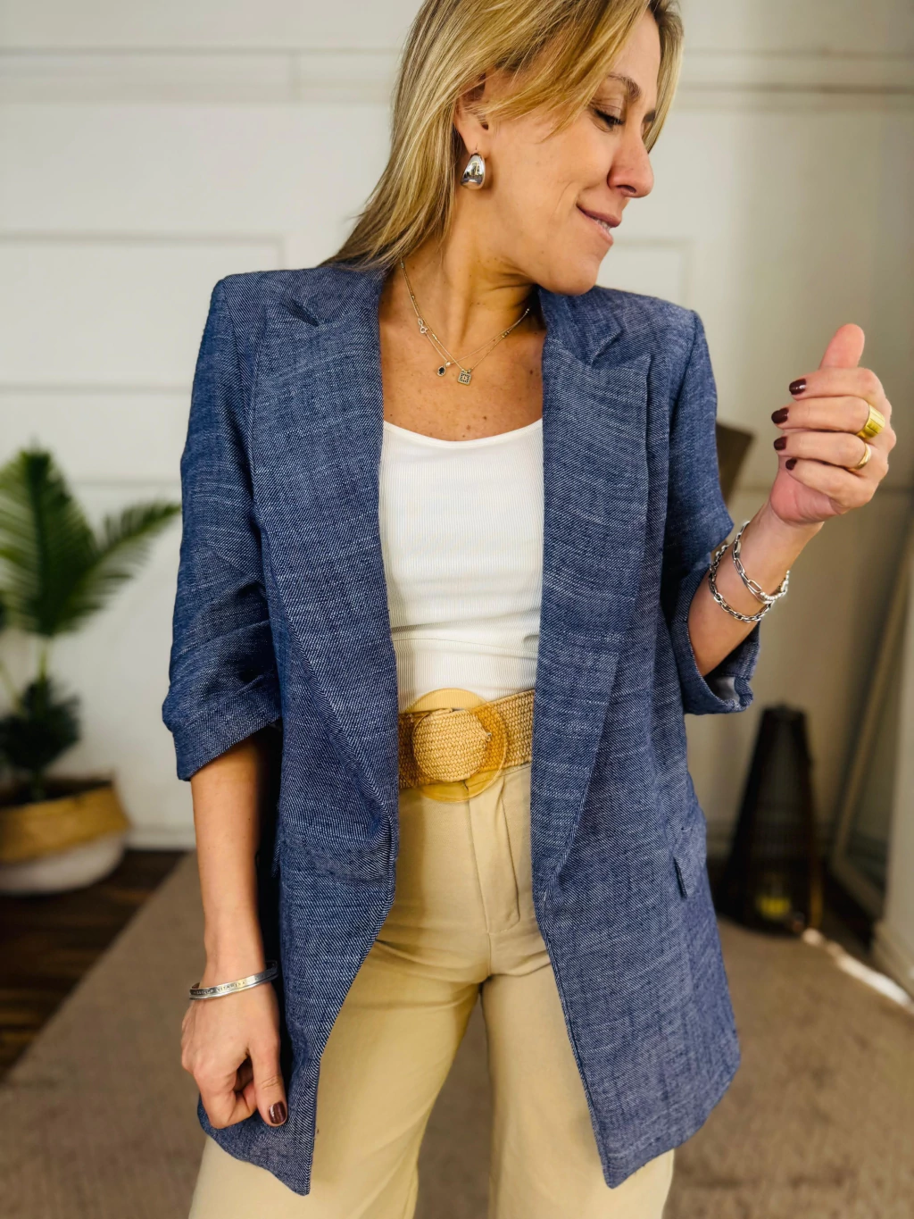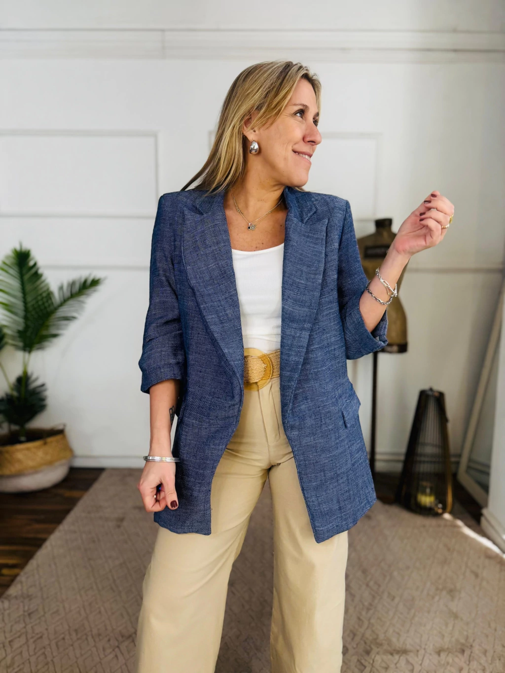 Descubrí el Blazer Camila, una prenda confeccionada en tela simil jean. Este blazer es la opción ideal para quienes buscan un look canchero.