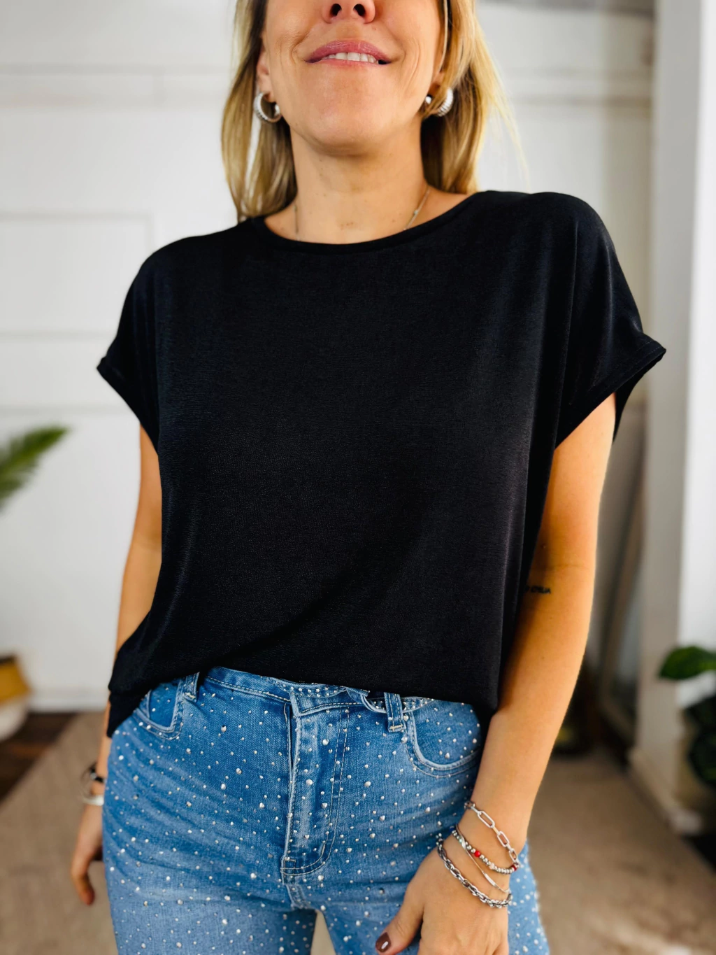 Descubrí la Blusa Brisa, una prenda, confeccionada en una tela viscosa tipo satinada, imprescindible para quienes buscan elegancia y comodidad en su día a día. Con un escote redondo clásico y un diseño suelto que ofrece una linda caída, esta blusa es la aliada perfecta para tus looks de oficina y eventos formales.