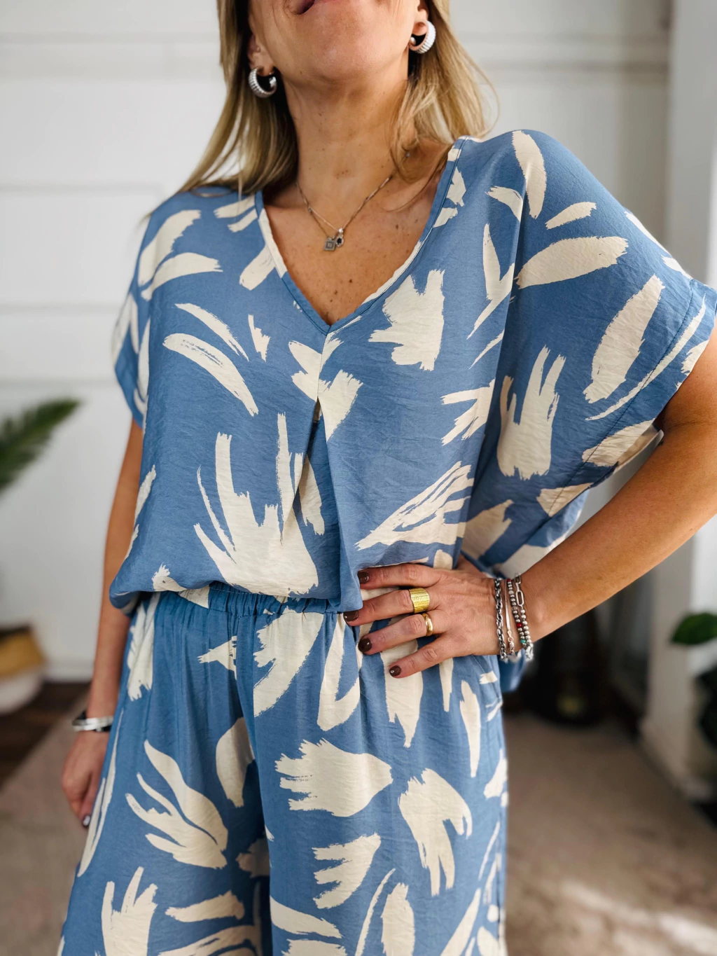 Esta blusa se destaca por su versatilidad, siendo la compañera perfecta para lucir junto a nuestro Palazzo Filipa, creando un conjunto armonioso y sofisticado que realza tu presencia con naturalidad.