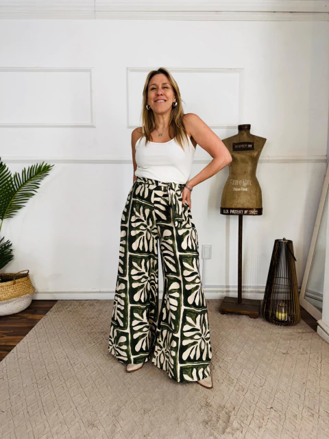 Descubrí el Palazzo Guinda, la prenda que combina a la perfección comodidad y elegancia para realzar tu estilo en cada momento. Confeccionado en lino estampado, este pantalón palazzo es ideal para quienes buscan una opción sofisticada y cómoda para la oficina o salidas formales.