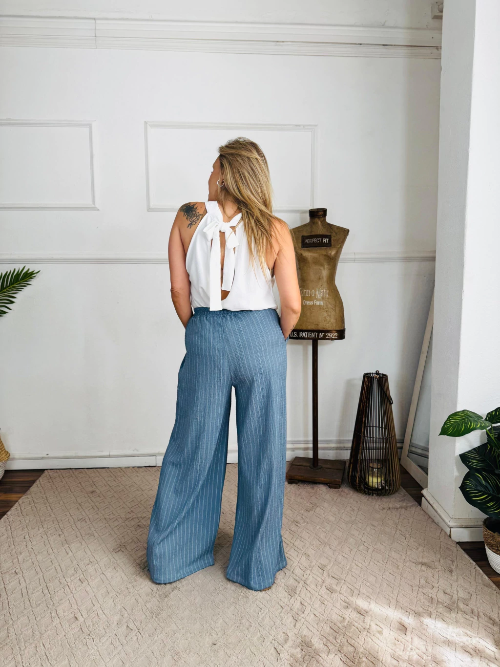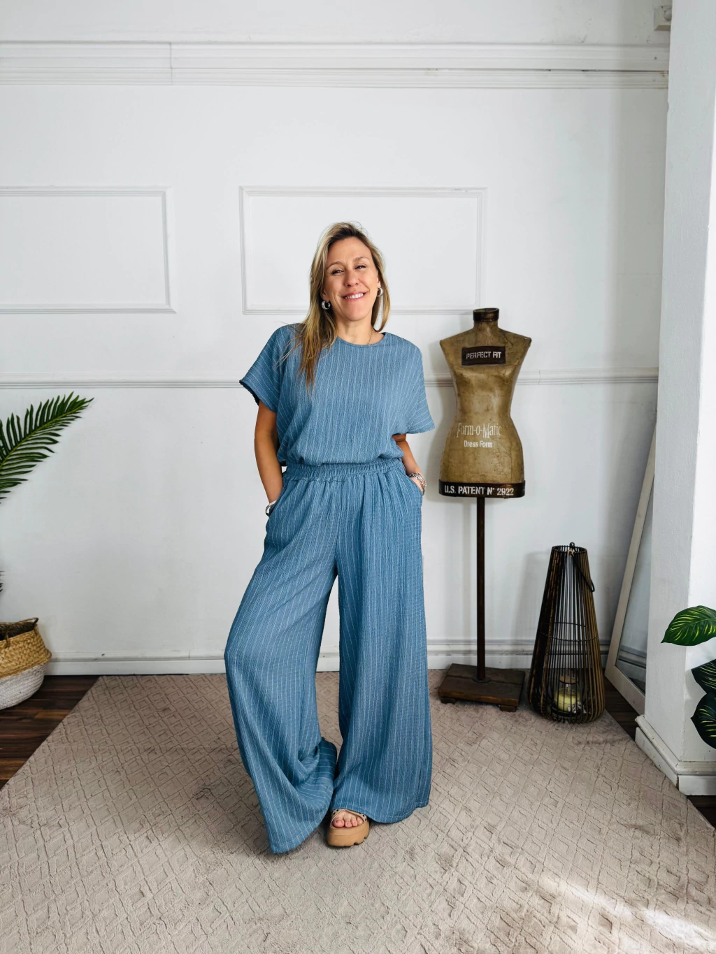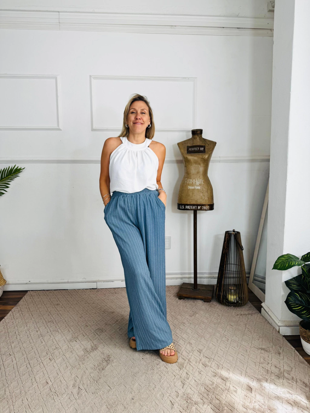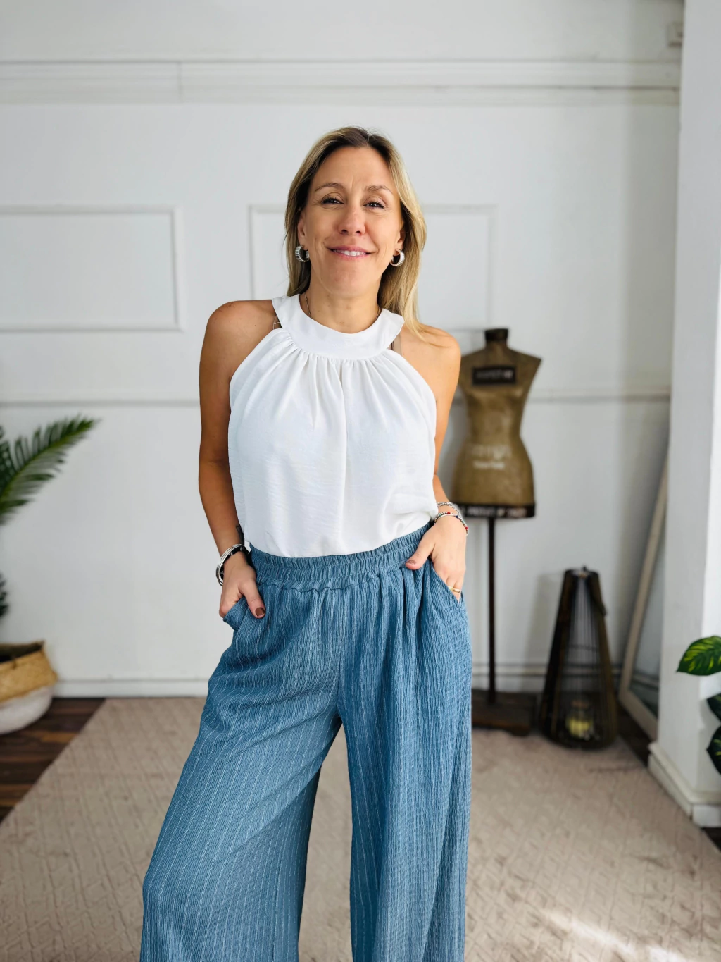 Descubrí el palazzo Hawai, una prenda que combina frescura y comodidad en cada detalle. Confeccionado en tela tipo bambula, un tejido liviano y suave al tacto, este palazzo es ideal para quienes buscan un estilo relajado pero con un toque de sofisticación.
