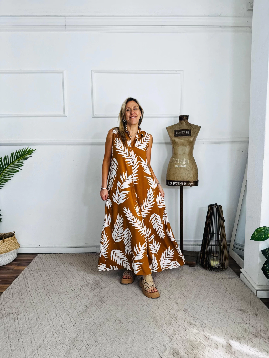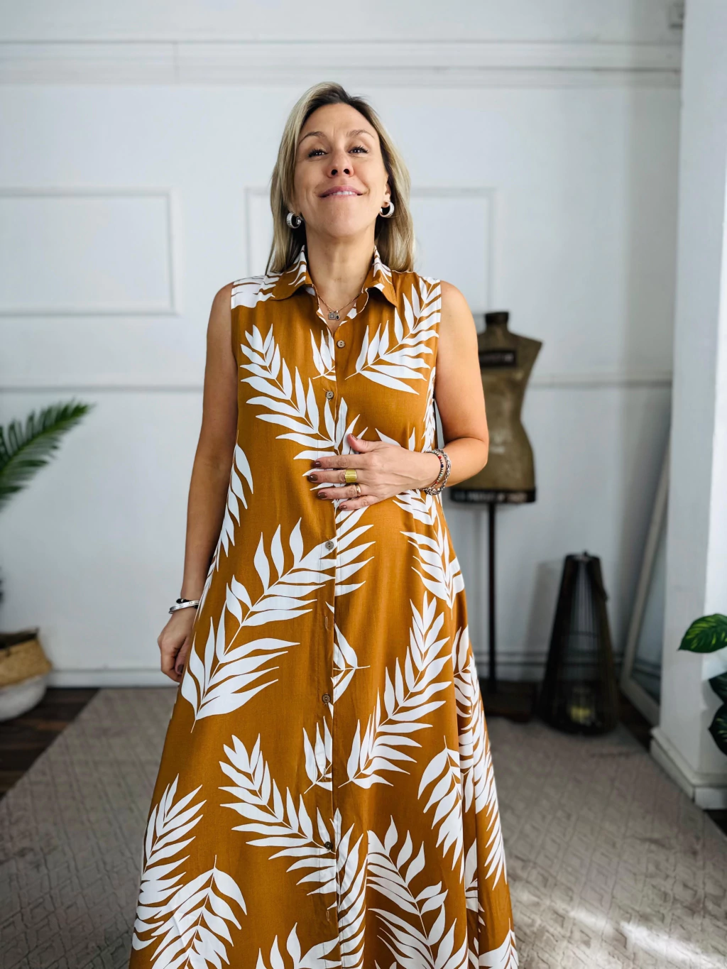 Descubrí el Vestido camisero Ana, una prenda confeccionada en rayón estampado que combina frescura y estilo con una comodidad inigualable. Su diseño sin mangas y corte camisero lo convierte en la opción perfecta para quienes buscan un look canchero, ideal para outfits de oficina, eventos casuales y salidas informales.