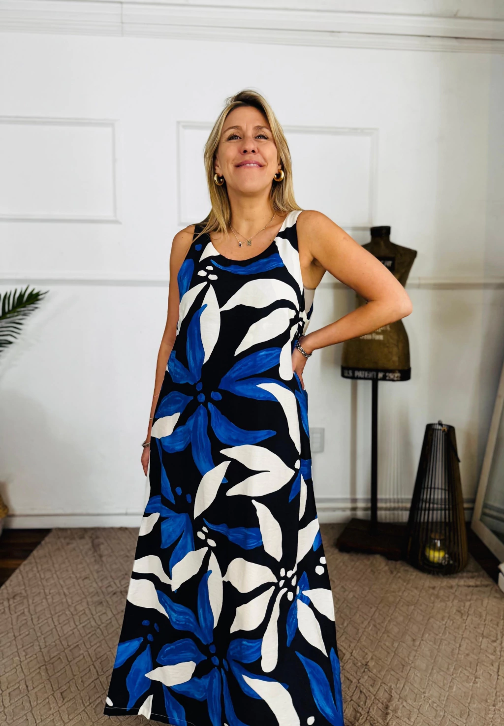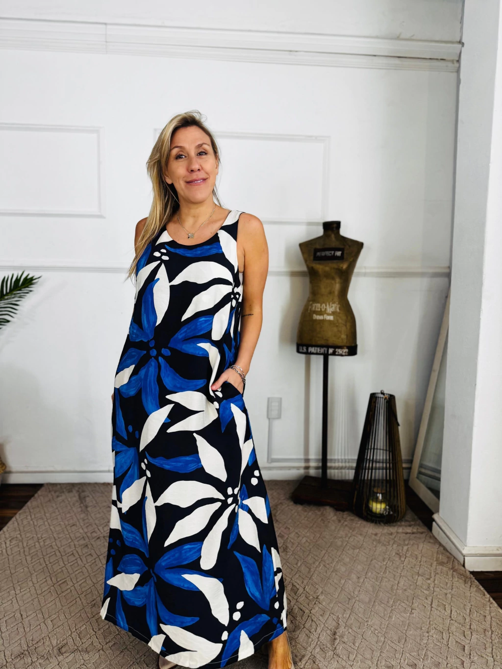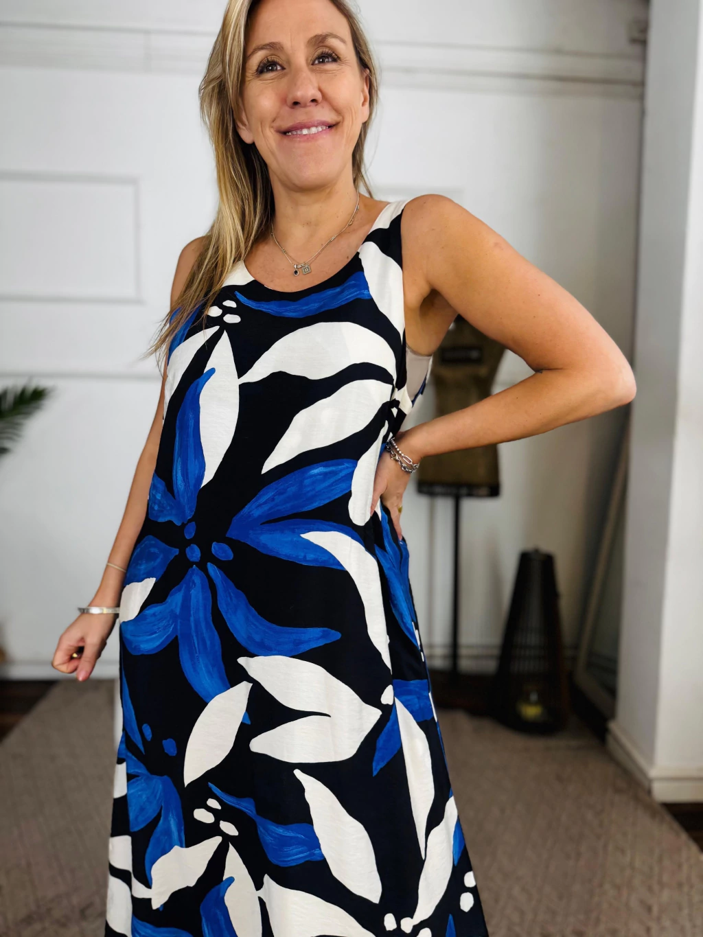 Este vestido destaca por su textura suave y su caída fluida, ofreciendo un ajuste cómodo que te permitirá moverte con total libertad sin sacrificar estilo. El estampado exclusivo aporta un toque moderno y sofisticado, haciendo que cada detalle resalte con naturalidad.