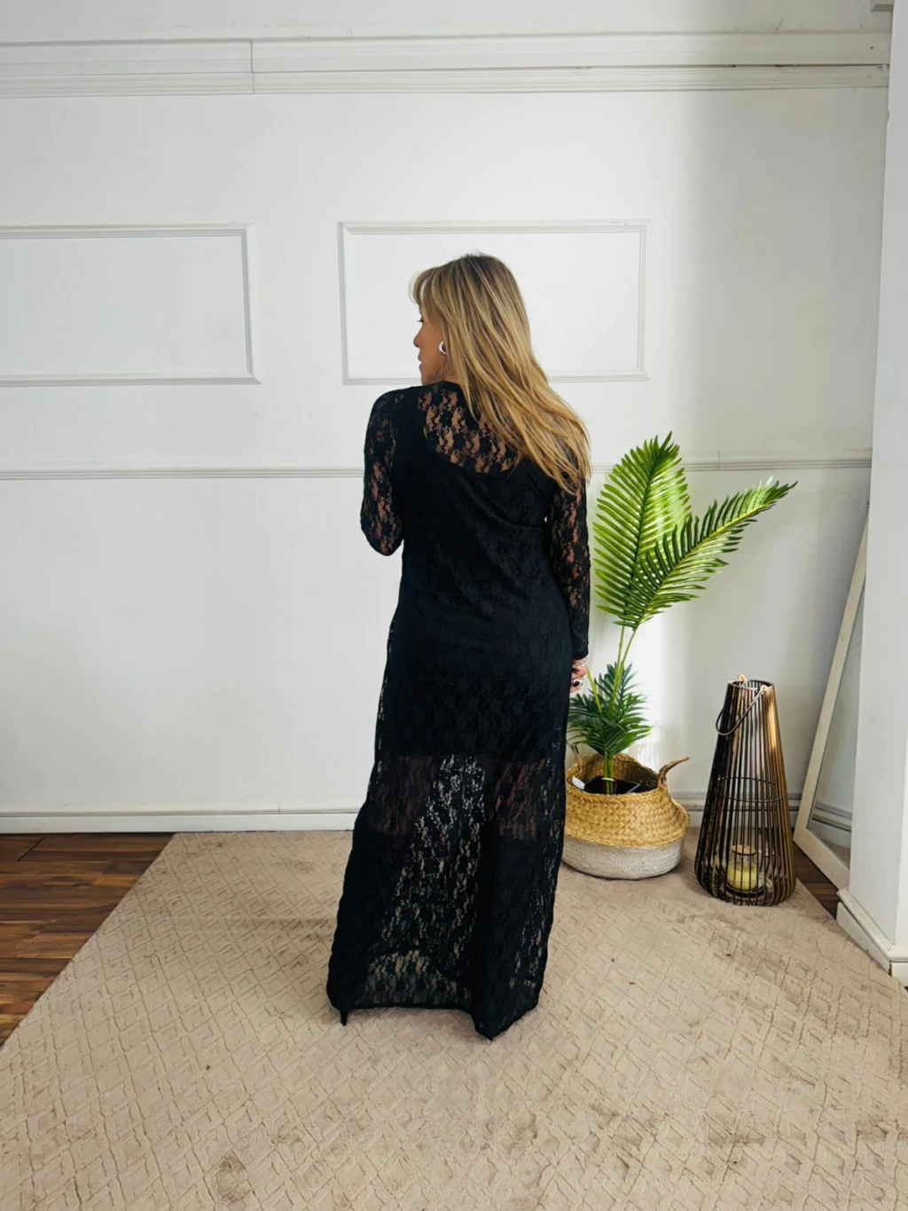 El Vestido Piscis, una prenda de elegancia infinita confeccionada en delicado encaje. Este vestido largo es ideal para quienes buscan resaltar su figura con un toque fino y sofisticado. Perfecto para ocasiones formales y salidas nocturnas, el Vestido Piscis te hará brillar en cada evento.