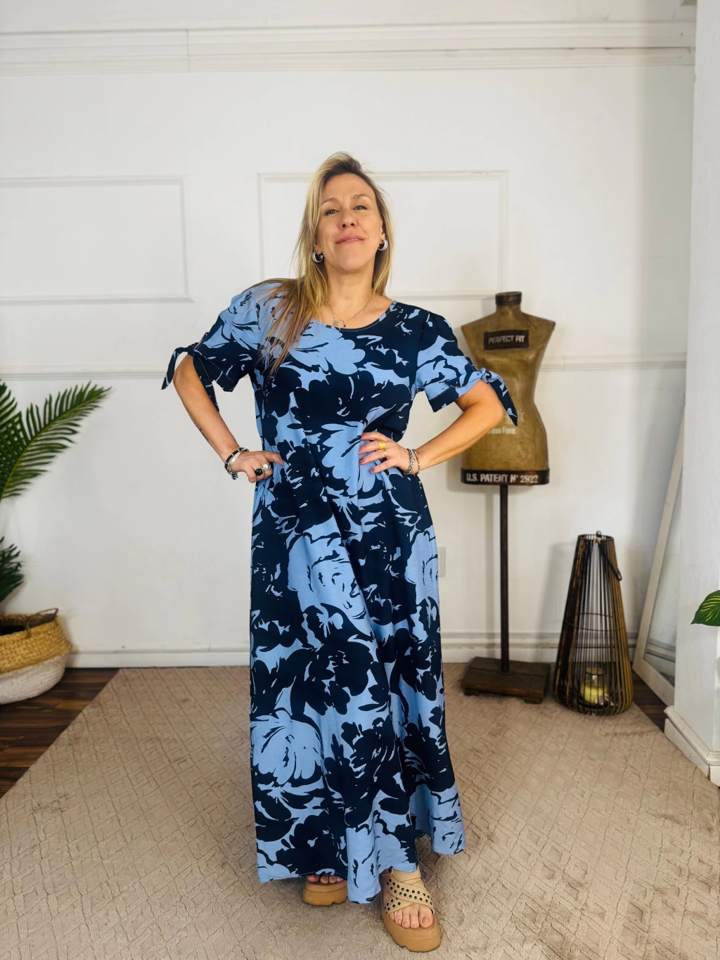 Descubrí el Vestido Rumi, una prenda que combina elegancia y comodidad en cada detalle. Confeccionado en satén poplín estampado, este vestido largo se destaca por su textura suave y su caída impecable, ideal para quienes buscan un look fresco y sofisticado.